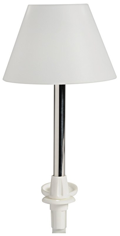 Abat-jour estraibile per illuminazione tavoli pozzetti. L’alimentazione arriva tramite le basette 13706 (vendute separatamente). Asta in acciaio inox con innesto a scatto. Abat-jour in materiale plastico.