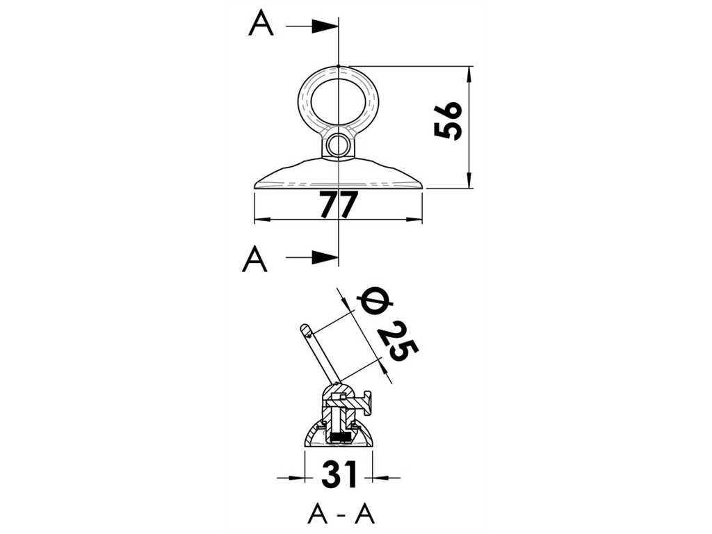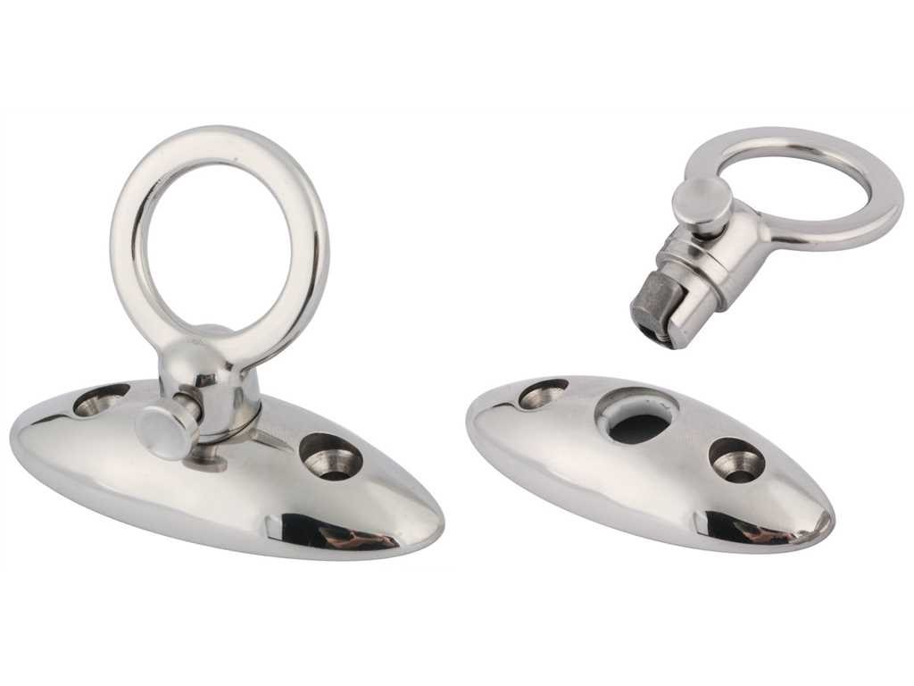 Permette di mettere e togliere i parabordi in pochi istanti. L'anello resta collegato al parabordo e si innesta a scatto nella basetta. Acciaio inox AISI 316 lucidato a specchio.
