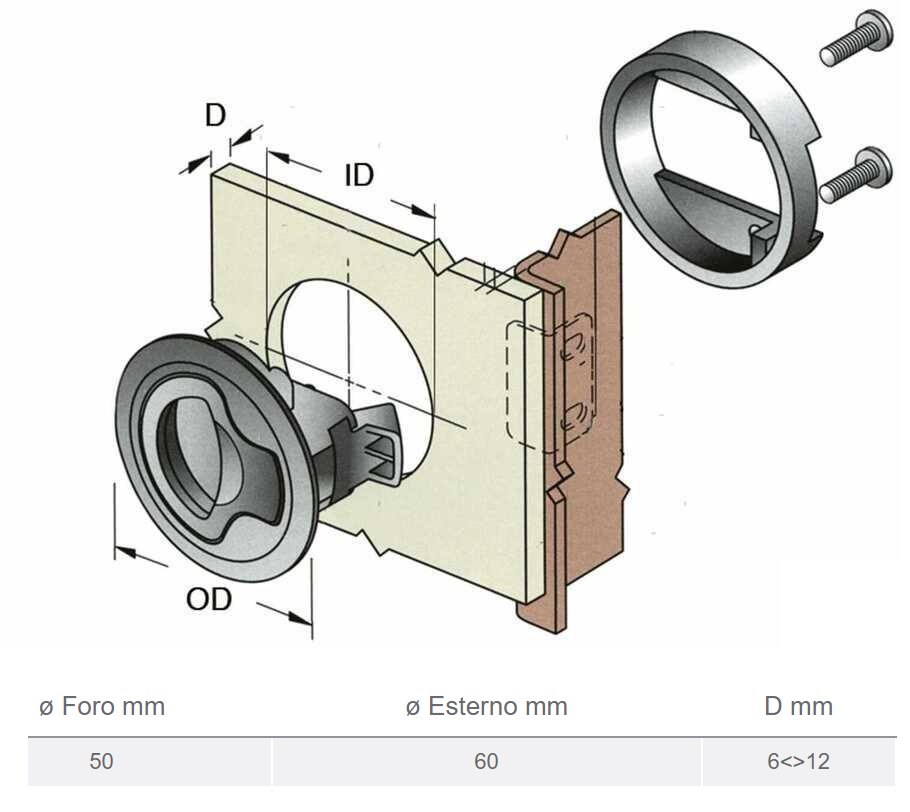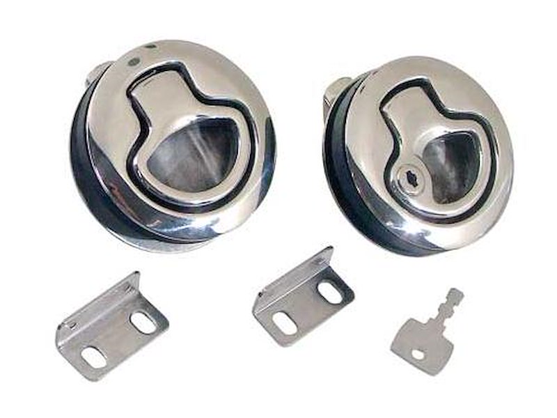 Alzapagliolo e chiusura sportelli con maglietta rientrante a molla. Costruito in acciaio inox AISI 316 lucidato a specchio. Completo di battuta a squadra.