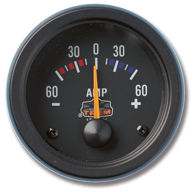 Amperometro, fondo colore nero. Strumento retroilluminato. Misure esterno 57 mm, incasso 52 mm .