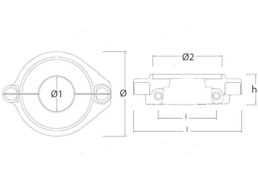 Anodo a collare apribile per Volvo Sail drive 130-150 (riferimento originale volvo 22651246).