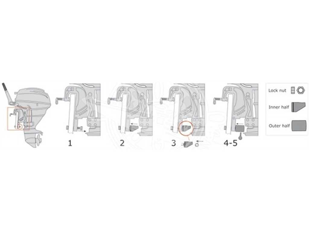 Fabbricato in acciaio inox AISI 316 lucidato a specchio. Si applica ad uno dei bulloni di fissaggio del motore fuoribordo. Costruzione extra-strong per una maggiore protezione. Stagno. Universale per ogni motore.