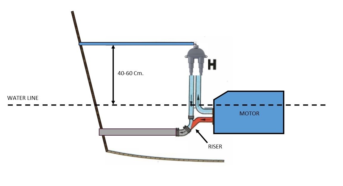 Dispositivo antisifone per impianti di scarico, prese a mare e WC montati sotto la linea di galleggiamento. Portagomma da 13/19/25/32 mm. (1/2"-3/4"-1"-1"1/4). Dimensioni 92 x 150 mm. .