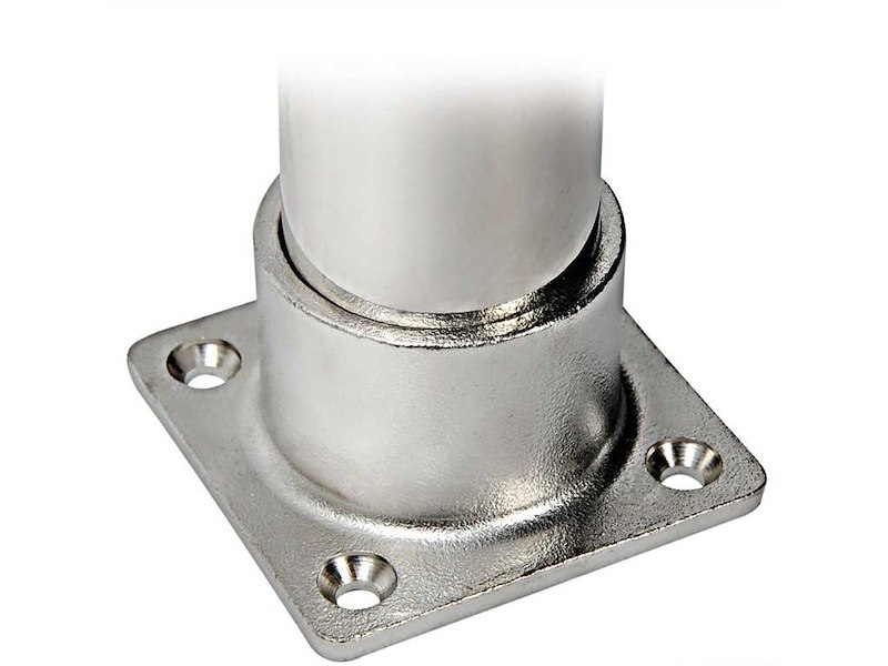 In acciaio inox lucidato a specchio con basi in acciaio inox. Conforme norme RINA con dichiarazione 11/710/88 DIP del 6/12/88.