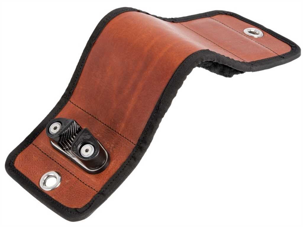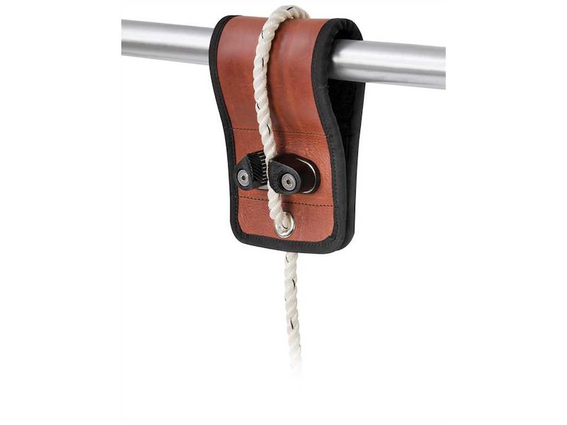 Aggancio mobile per la sospensione di parabordi. Rivestito in pelle all'esterno, si adatta a tutti i corrimano o tubolari fino al diametro massimo di 50 mm. Il rivestimento interno in lana permette di non farlo scivolare ed evita graffi. La chiusura avviene per mezzo di larghe strisce in velcro che uniscono la parte finale. Per mezzo dello strozzatore con guance in Delrin dentellate in acciaio inox lucidato, adatto a cime di diametro da 10 a 14mm, la sospensione del parabordo può essere regolata in altezza. Internamente sono inserite due piastre in acciaio inox per garantire un fissaggio solido e sicuro dello strozzatore oltre a migliorare l’estetica in fase di applicazione. Anello passa-cima in acciaio inox.