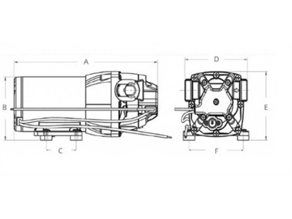 Il pressostato si inserisce a 1,4 bar (20 psi) e si interrompe a 2,8 bar (40 psi). Pompa efficiente ad alta portata autoadescante che serve 4 o più uscite.