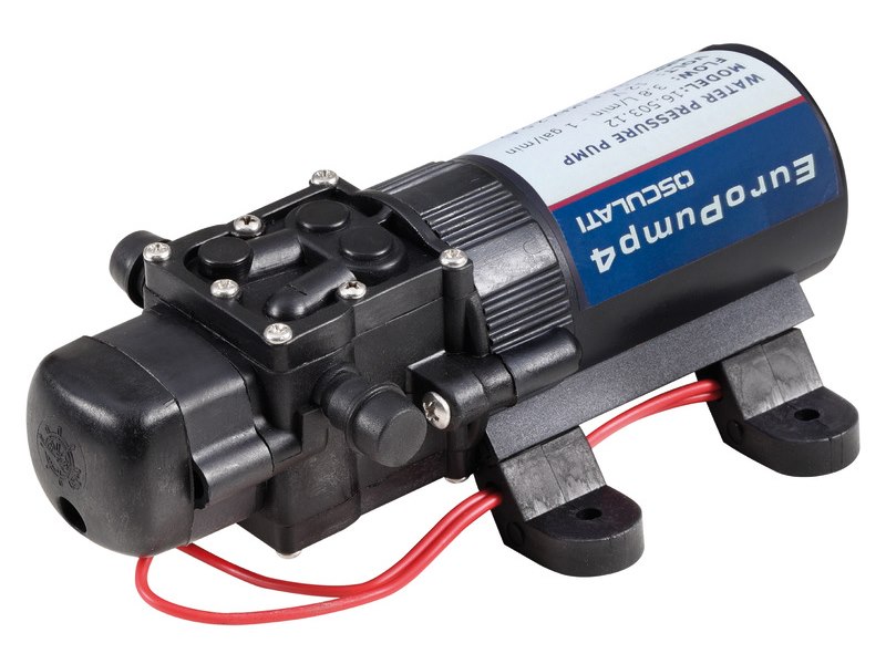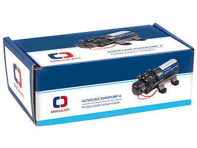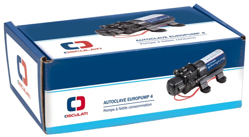 Autoclave per Europump completa di pressostato. Può girare a secco senza rovinarsi. Il bypass interno riduce notevolmente le pulsazioni per un flusso d'acqua costante. Modello da 3,8 litri al minuto .