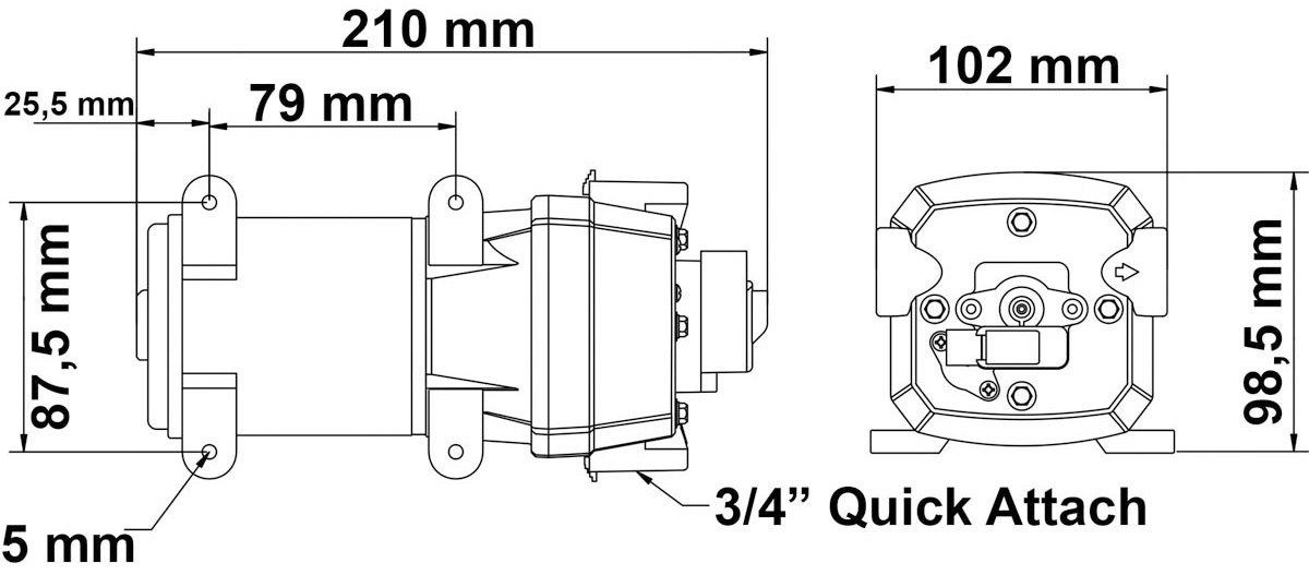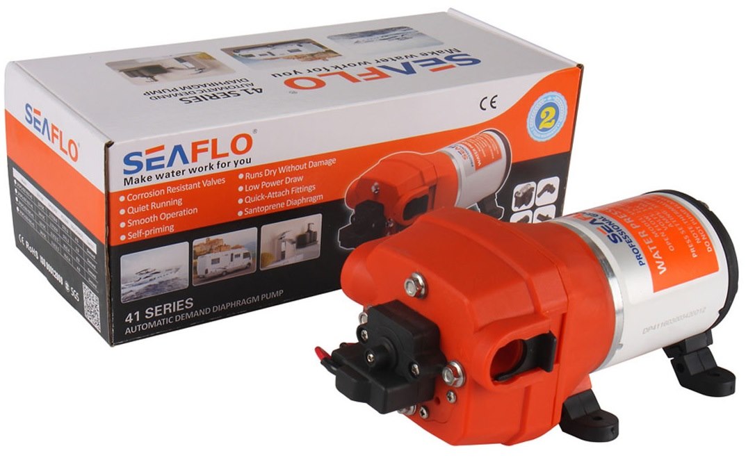 Autoclave per serbatoio barche SeaFlo completa di pressostato. Può girare a secco senza rovinarsi. Il bypass interno riduce notevolmente le pulsazioni per un flusso d'acqua costante. Può alimentare fino a 2 impianti. Fornita con attacchi rapidi e filtro acqua. Portata 10 Litri/minuto.