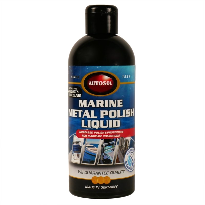 Autosol Marine Metal Polish Liquid pulisce, lucida e protegge i metalli di tutti i tipi. Si ottine una finitura lucida e splendente. Rilascia una film protettivo che ritarda opacità ed ossidazioni. La formula liquida garantisce grande facilità e praticità nell' utilizzo.