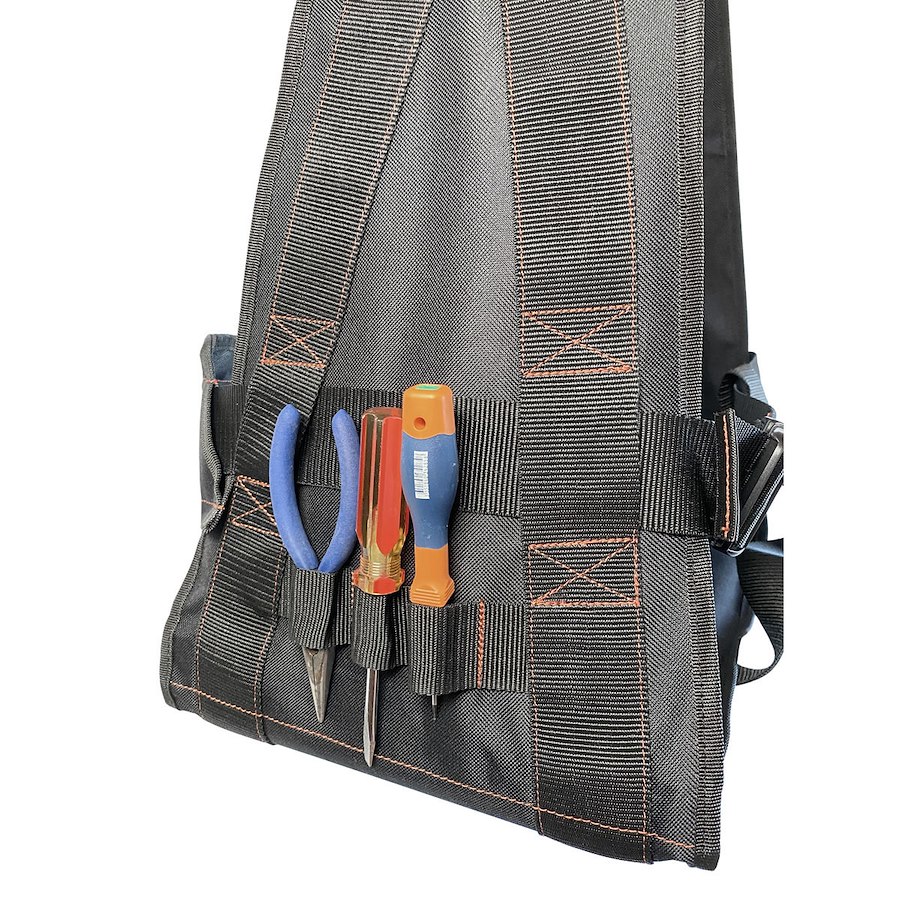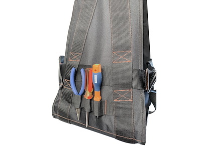 Bansigo professionale con tavoletta colore nero. Fabbricato in tessuto di nylon cordura, imbottito con espanso che fornisce un grande senso di sicurezza e allo stesso tempo di libertà nei movimenti. Provvisto di tasca laterale, fibbie di regolazione e rastrelliera porta-attrezzi. Misure 38 x 28 cm. .