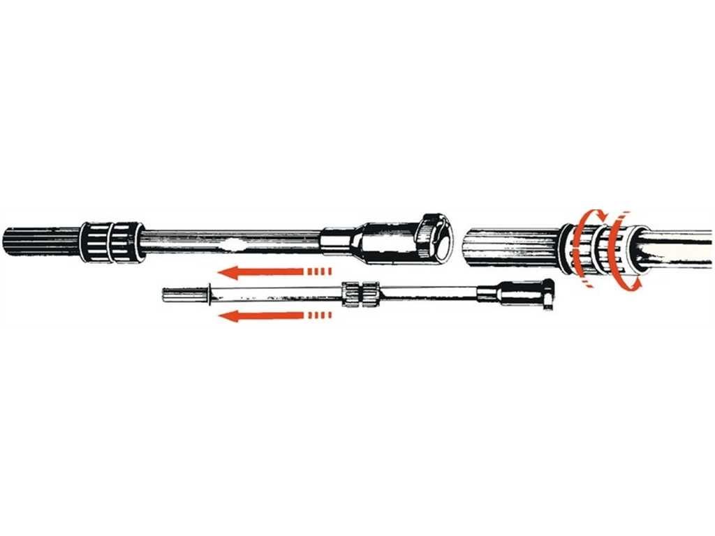 Versione con bloccaggio brevettato a scatto. Modello universale, é realizzato in tubo di alluminio anodizzato, con manopole in gomma e bloccaggio in nylon.