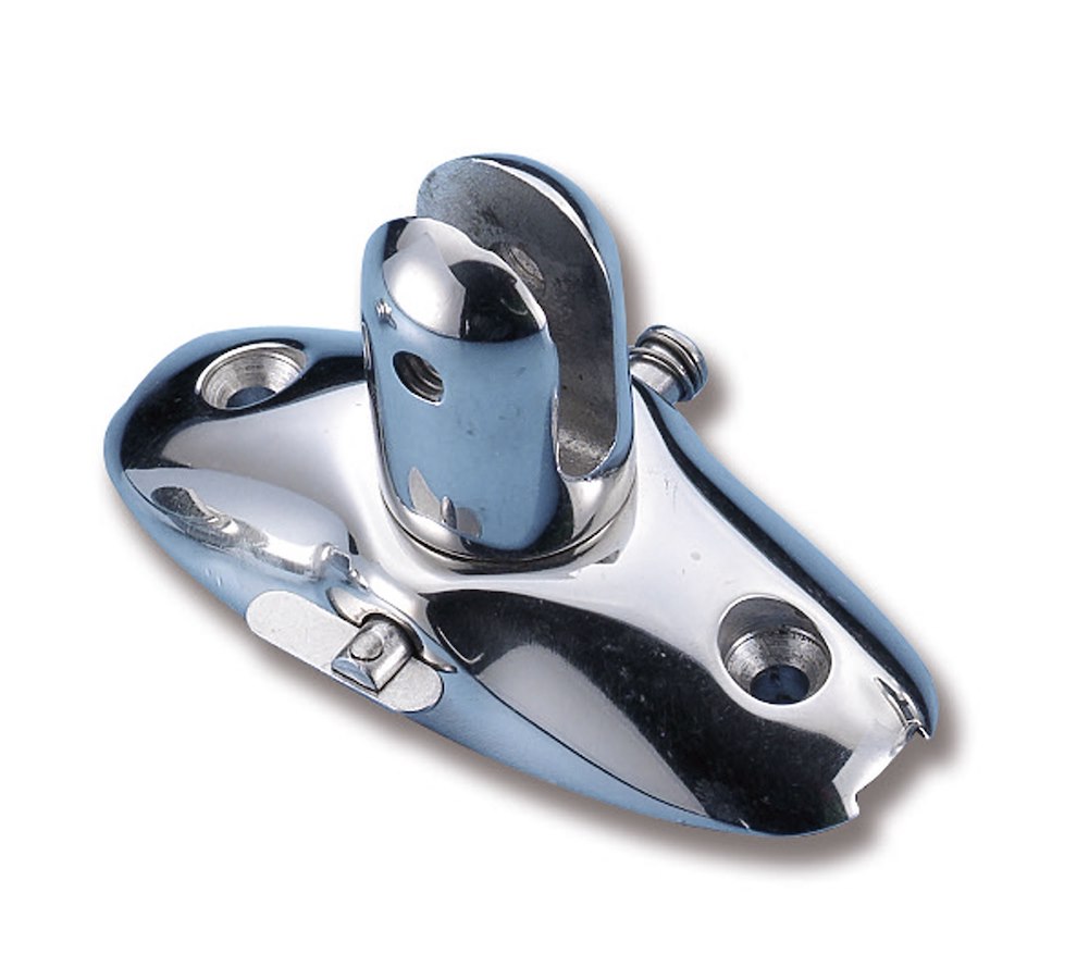 Basetta in acciaio inox per attacco capottine e tendalini . Dotata di perno sfilabile a molla.