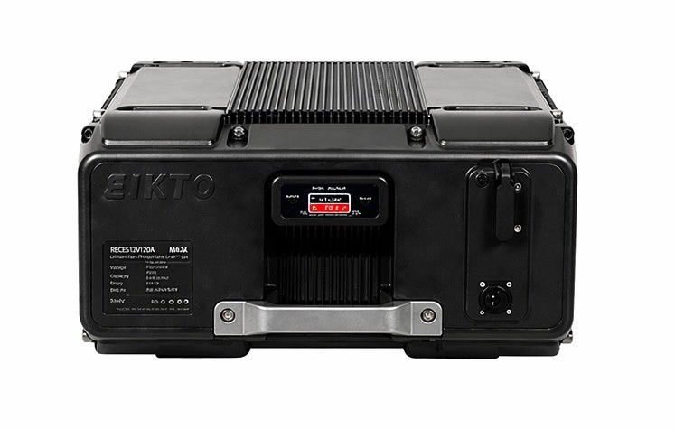 Batteria al litio a 24V da 120 AH al ferro-fosfato (LFP) ad alta densità energetica prodotta da EIKTO, progettata specificamente per motori elettrici.