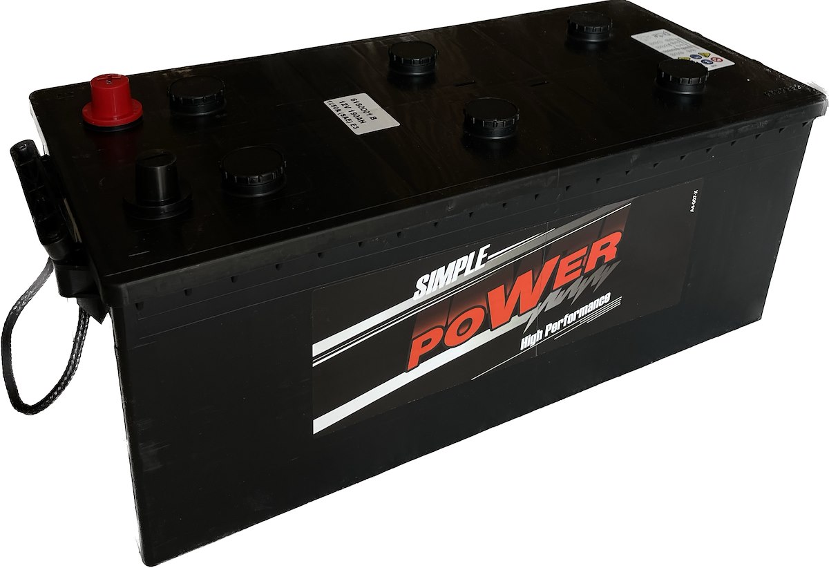 Batteria Simple Power prodotta dall'azienda Italiana Saf Italy. Capacità 190 Amper con spunto di 1250 En, superiore del 30% rispetto alla media. Ottimo rapporto qualità prezzo. Durata vita, superiore del 50%. Resistenza alle vibrazioni. Dimensioni: 513X223X223 mm. 12 Volt. Peso 42 kg. .