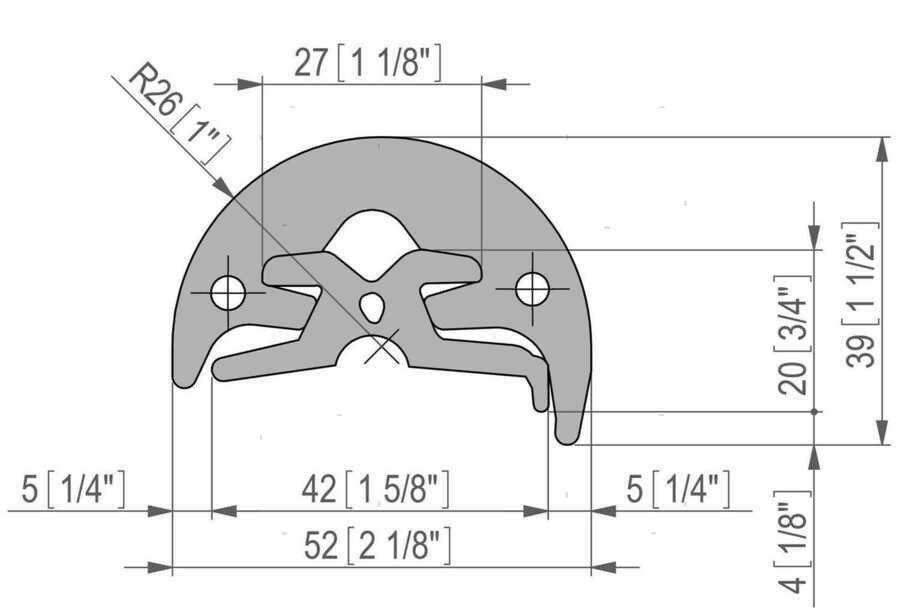 Binario per bottazzo Radial H 52 mm. - Barra da 2 metri -