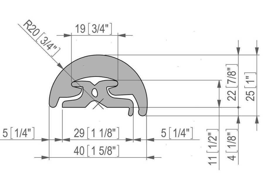 Binario per bottazzo Radial H 40 mm. - Barra da 2 metri -