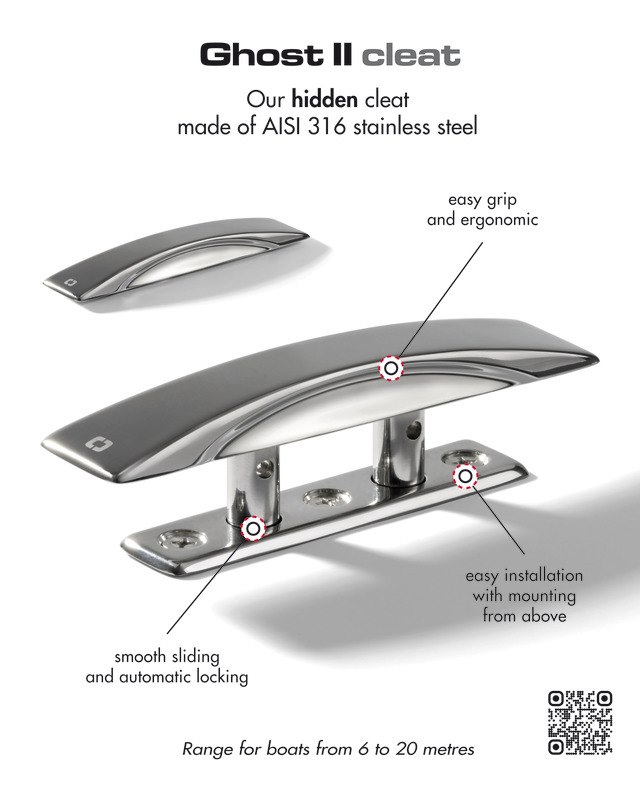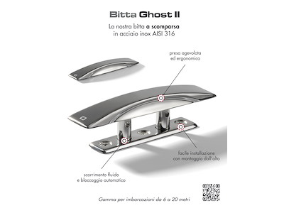 Bitta a scomparsa GHOST. Bitta stagna con montaggio tramite viti da sopra. Ottima scorrevolezza. Presa ergonomica per il sollevamento. O-ring in gomma fluorata che permette una scorrevolezza fluida. Approvate ENAVE in accordo alla ISO 15084:2003.