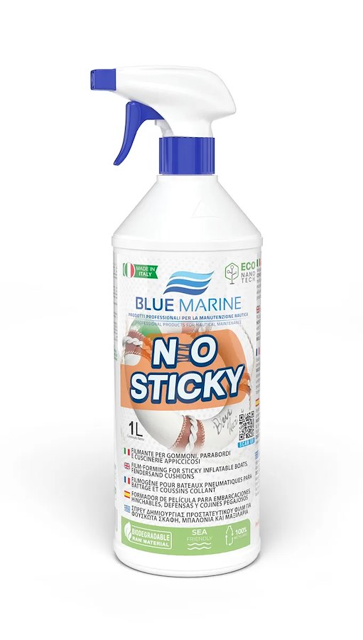 Blue Marine No Sticky filmante per eliminare appiccicosità da gommoni, cuscinerie e parabordi.