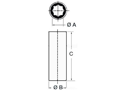 Per asse da 1'' 1/2 . Versione interno ed esterno in pollici . Misure : A : Ø 1'' 1/2 (38,10 mm.) - B: Ø 2'' (50,80 mm.) - C: 152,40 mm. .