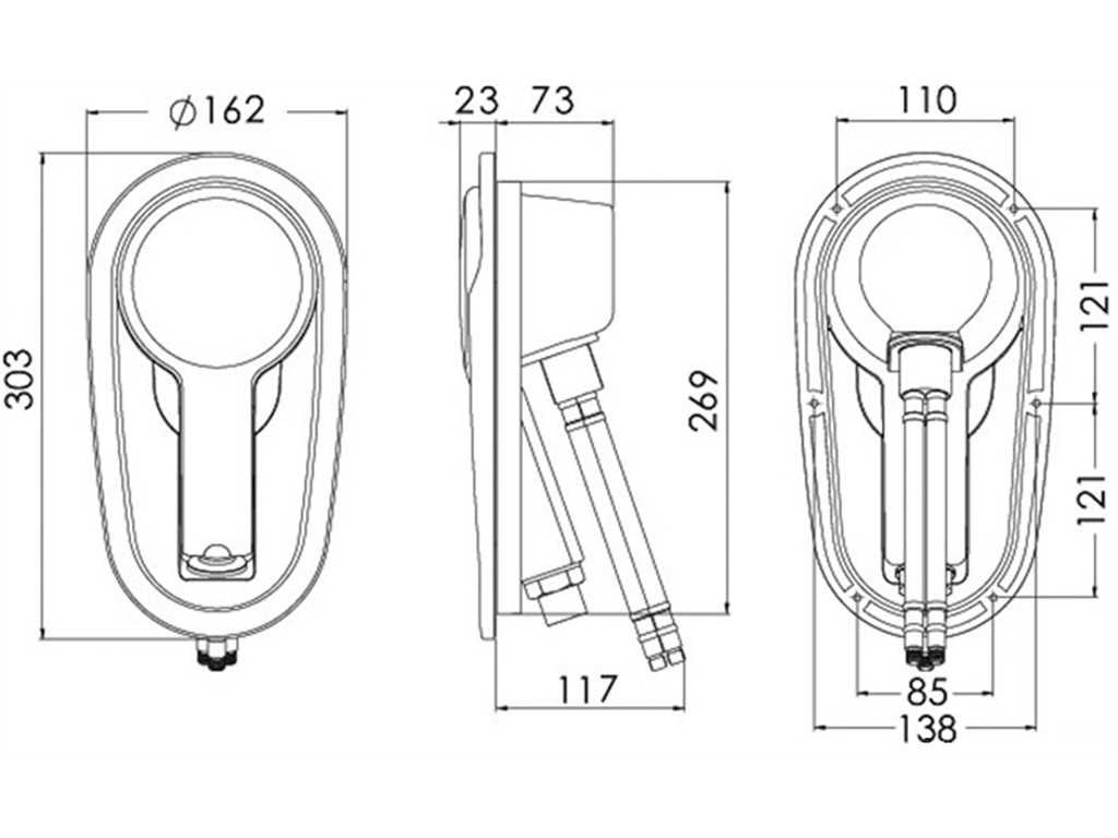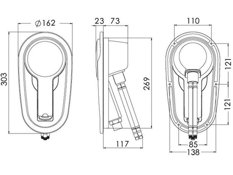 Dimensioni incasso 132 mm x 271 mm, ingombro esterno 162 mm x 303 mm.