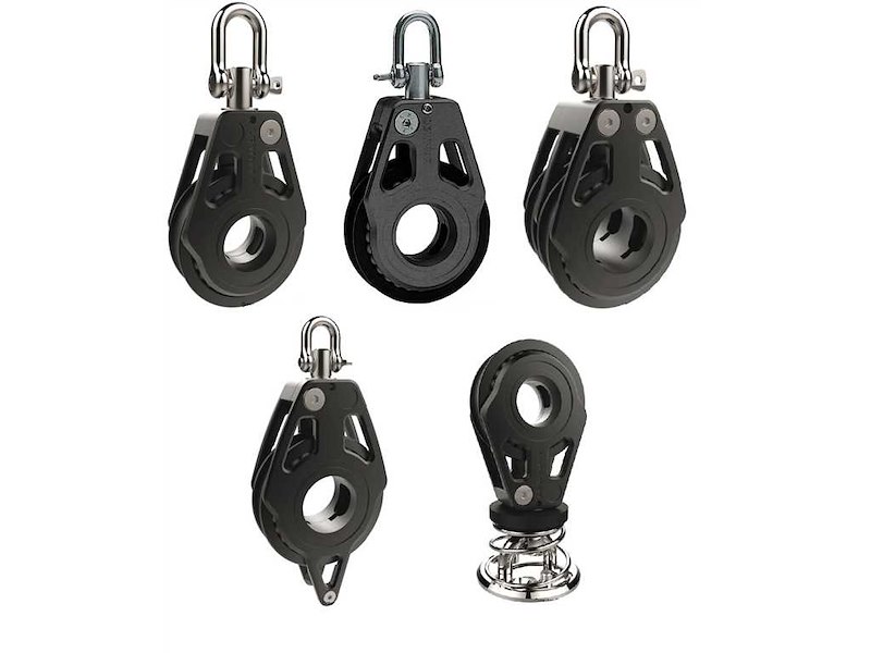 Progettati per offrire il miglior rapporto tra robustezza e peso. Realizzati con guance in alluminio anodizzato, nella versione alto carico utilizzano pulegge in alluminio ricavate dal pieno. Le pulegge scorrono su rulli in Torlon e sono guidate da sfere in Delrin.