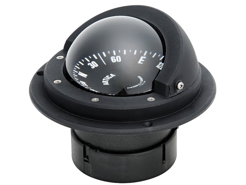 Bussola Riviera Artica BA1 colore nera .Bussola a incasso con schermo antiriflesso. Compensazione incorporata. Illuminazione 12V. Sospensione semicardanica interna. Rosa da 2" 3/4 (-70 mm). Omologazione EC Type Certificate Nr. CCE45499.