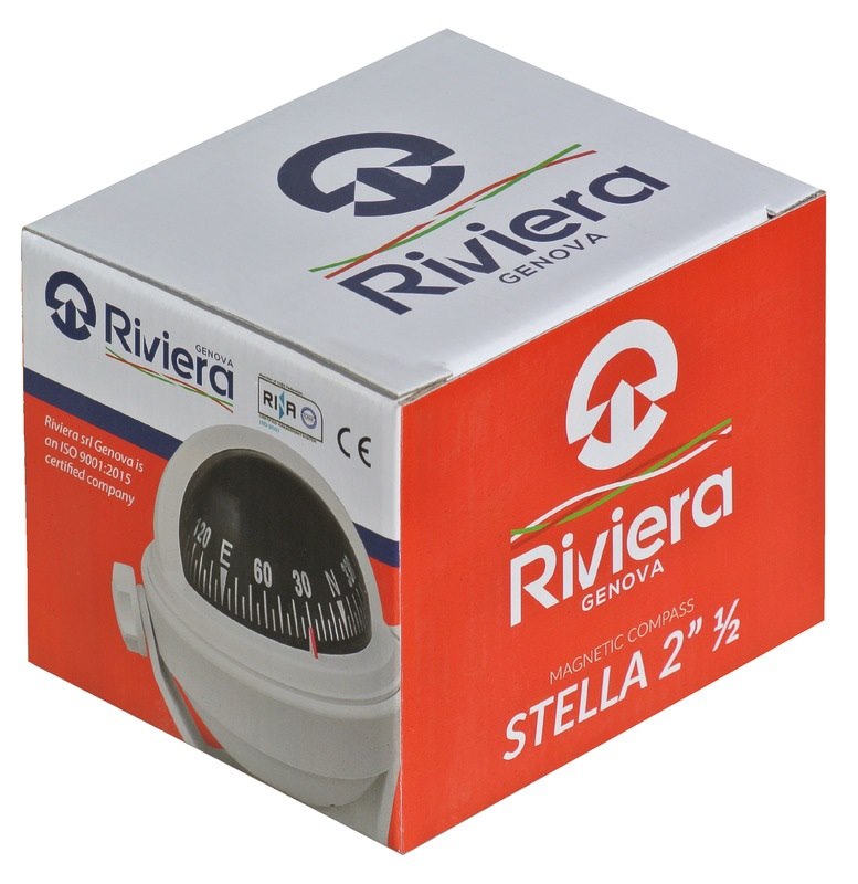 Bussola marina RIVIERA STELLA BS2. Bussola a staffa con calotta antiriflesso. Gradazione luminescente per lettura notturna.
