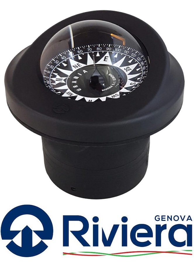 Bussola Riviera BU3 installazione ad incasso orizzontale. mologata per la navigazione oltre le 6 miglia . Rosa nera 5° Schermo antiriflesso. Completamente smontabile e riparabile.