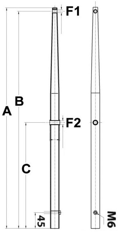 Candeliere per basetta maschio. In acciaio inox AISI 316 lucidato a specchio. Si fissa alla base tramite una vite che permette al candeliere di ruotare sulla base per un perfetto allineamento con il trincarino.