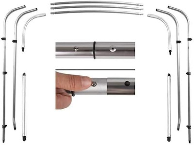 Tendalini Oceansouth con struttura in alluminio a 4 archi, tubo in alluminio anodizzato da 25 mm. e con terminali in plastica. Completo di 4 tenditori a cinghia in poliestere e ganci in inox. Tessuto in poliestere impermeabile. Colore Blu.
