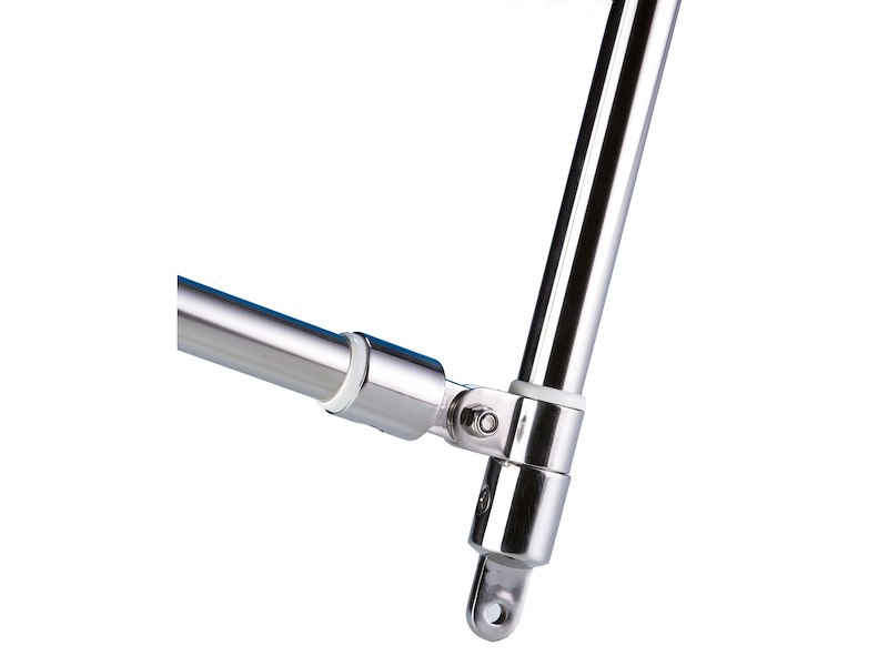 Capottina parasole modello lusso a tre archi, struttura in acciaio inox 316 con tendalino in polyestere spalmato PVC, attacchi inox. Tessuto colore bianco. Velocità max di utilizzo di 40Mph.