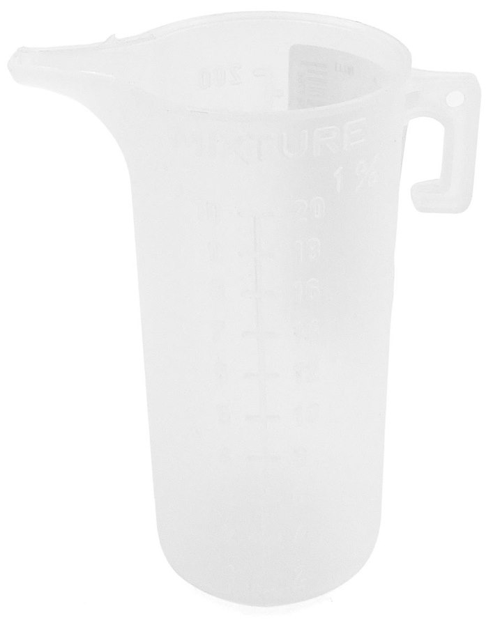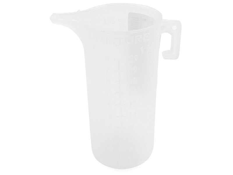 Caraffa graduata per miscela . Fabbricata in materiale plastico con graduazione sulle pareti.