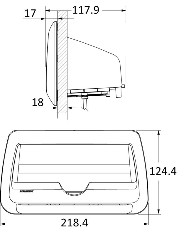 - Dimensioni (incasso): 218,4 x 124,4 x 117,9 mm.