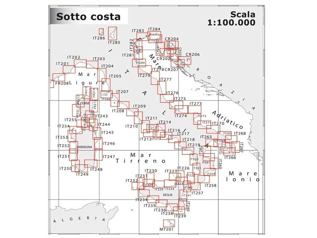 Formato 47,7 x 69,7 cm. . LATO 1: IT207 - Da Punta Ala a Cala Galera con I. Giglio ed I. Giannutri + LATO 2: IT208 - Da Porto Ercole a Capo Linaro con I. Giannutri. Scala: 100.000.