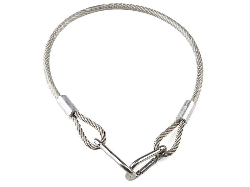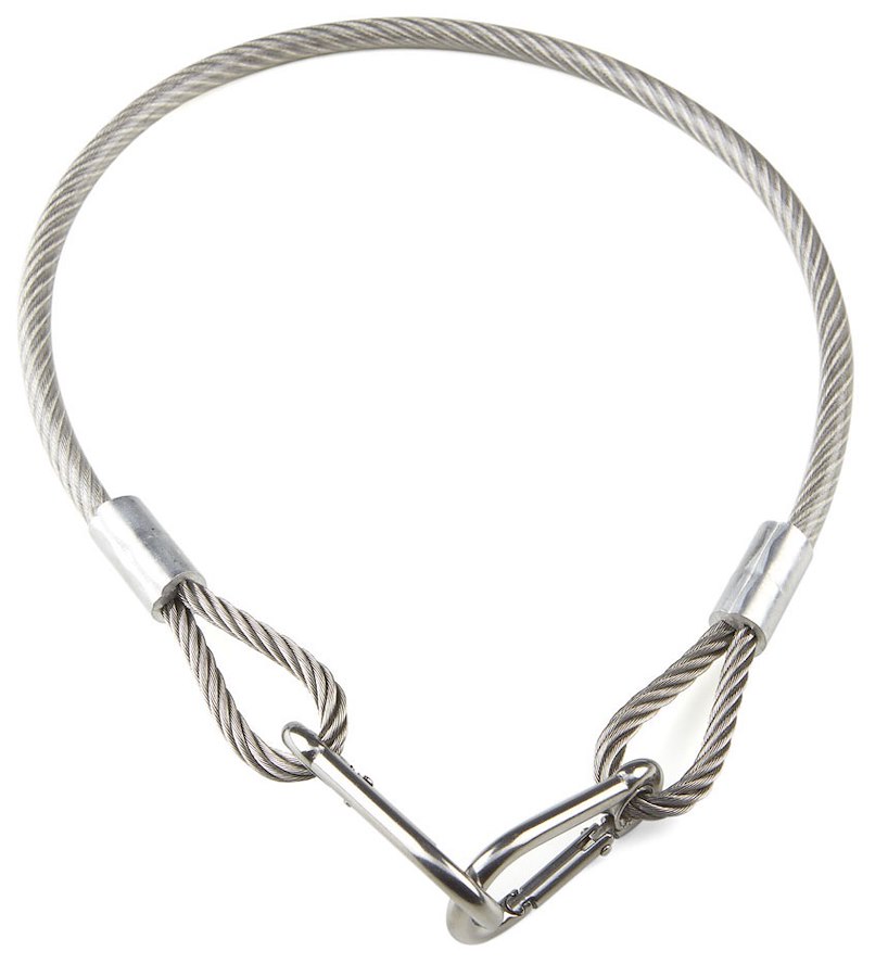 Cavo di sicurezza per fuoribordo fino a 25 Hp. Cavo di acciaio plastificato e munito di due moschettoni in acciaio inox 18/8. Indispensabile per evitare l'eventuale perdita del motore fuoribordo. Lunghezza 60 cm.