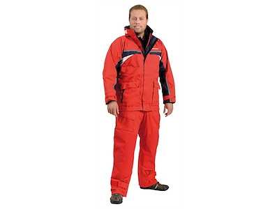 Fabbricata in nylon traspirante di medio peso, 100% antivento, idro-repellente e anti-strappo. Tutte le cuciture sigillate. Giacca: completamente foderata con fibra poliestere 100%, cappuccio regolabile pieghevole fluo ad alta visibilità, collo foderato con morbido pile, cerniera inossidabile con doppia patella di protezione e velcro. Tasca alta porta-telefono. Due tasche laterali con doppia chiusura anti-allagamento. Tasche scaldamani con cerniera ed interno ad asciugamento rapido. Doppi polsini anti-tempesta in poliuretano. Pantalone alto: completamente foderati, schiena elasticizzata. Rinforzi su sedere, ginocchia, caviglie. Bretelle regolabili ad aggancio rapido. Caviglie regolabili, tasca con velcro. Cerniera frontale inossidabile con marsupio anti-allagamento.