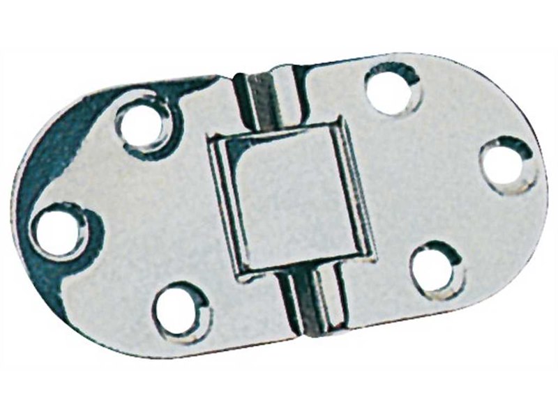 Cerniere marine in acciaio inox lucidate a specchio. Completamente con blocco a 180° a filo per ribaltine tavoli. Munite di blocchetto centrale microfuso.