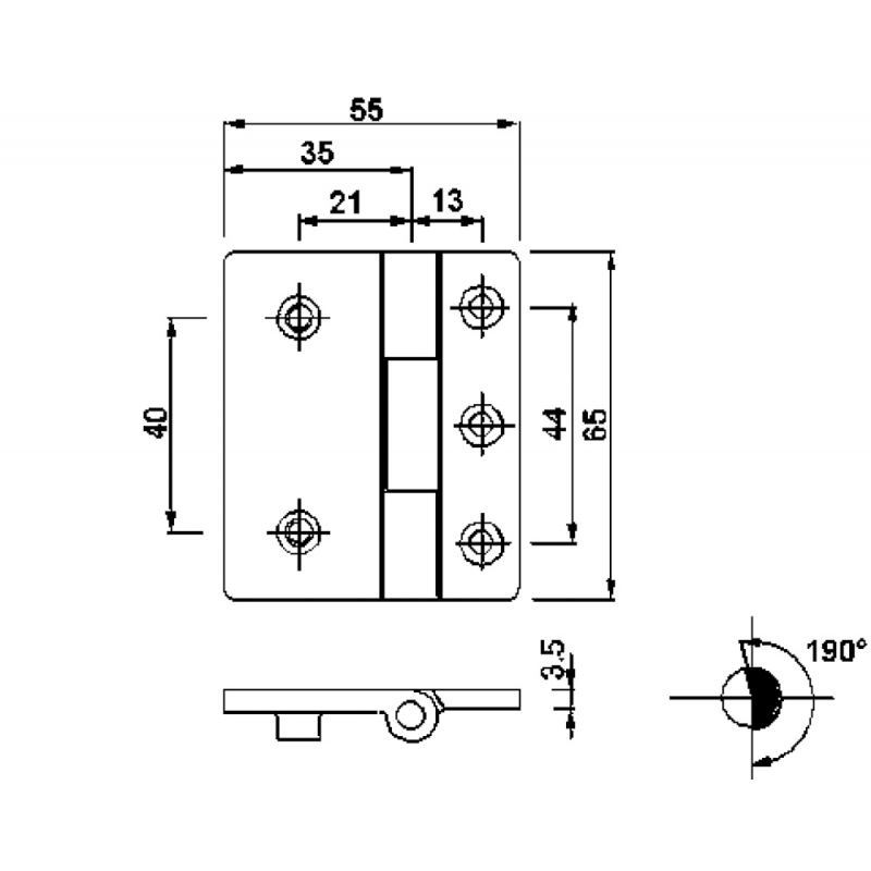 Cerniere a filo in acciaio inox 55 X 65 mm