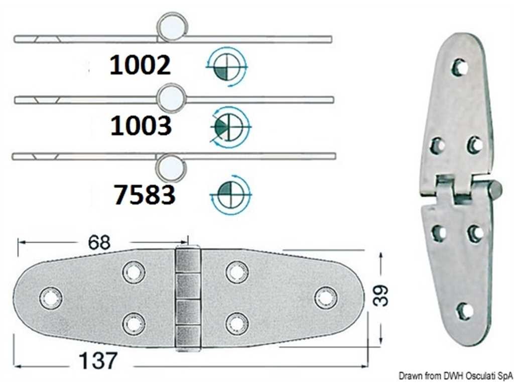 Cerniera 68 x 39 x 2 mm. Nodo Rovesciato