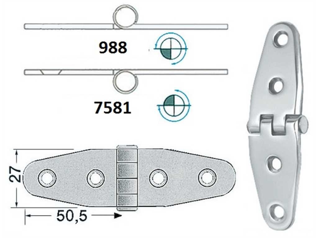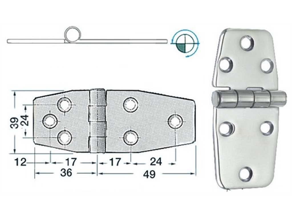 Cerniera 47 x 30 x 2 mm. Nodo Rovesciato