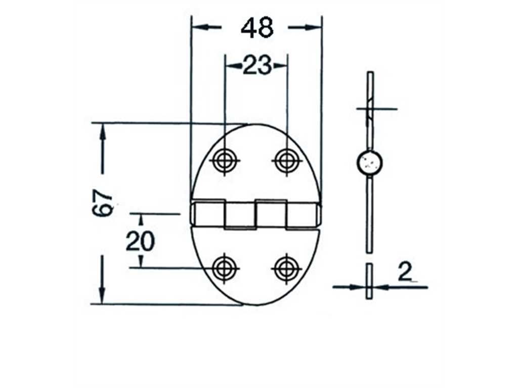 Cerniera 68 x 39 x 2 mm. Nodo Sporgente