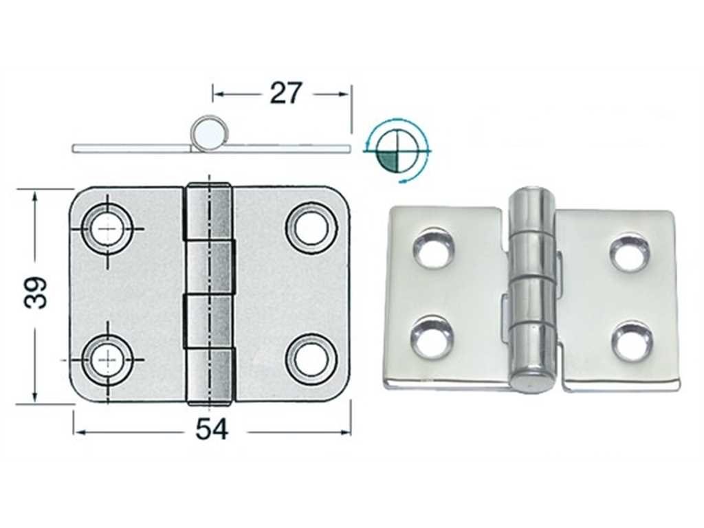 Cerniera 54 x 39 x 2 mm. Nodo Sporgente