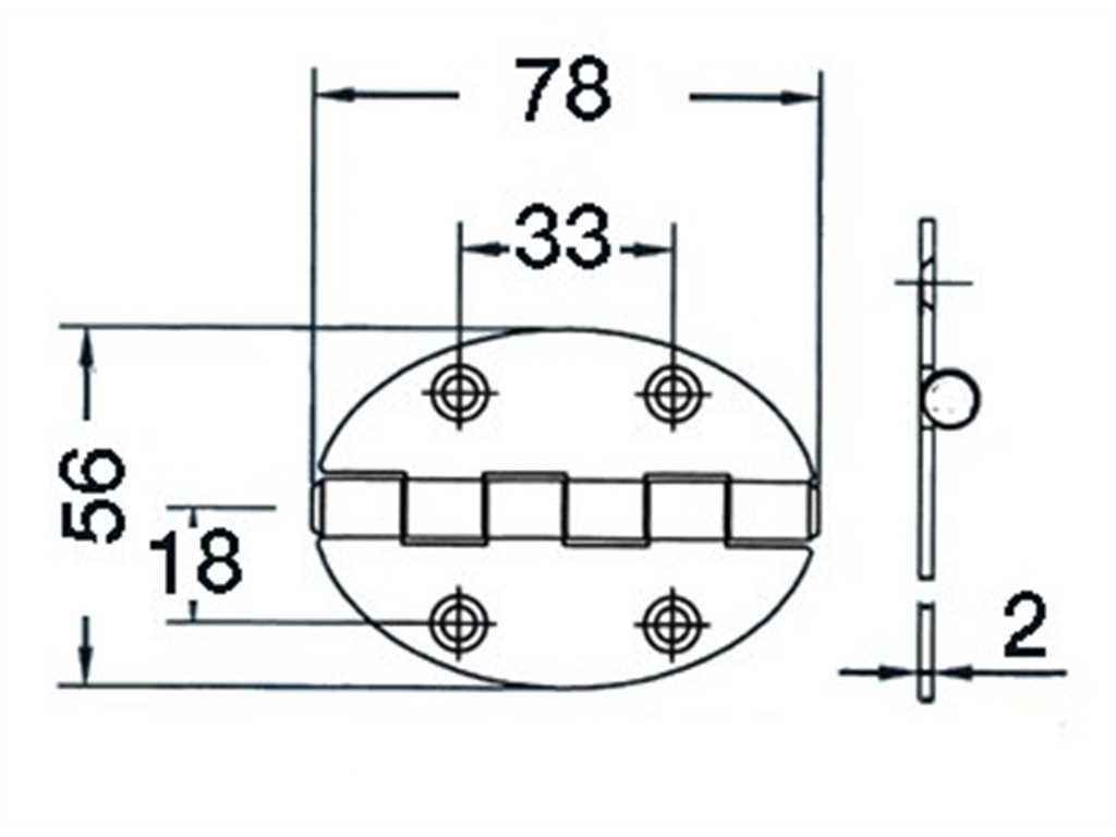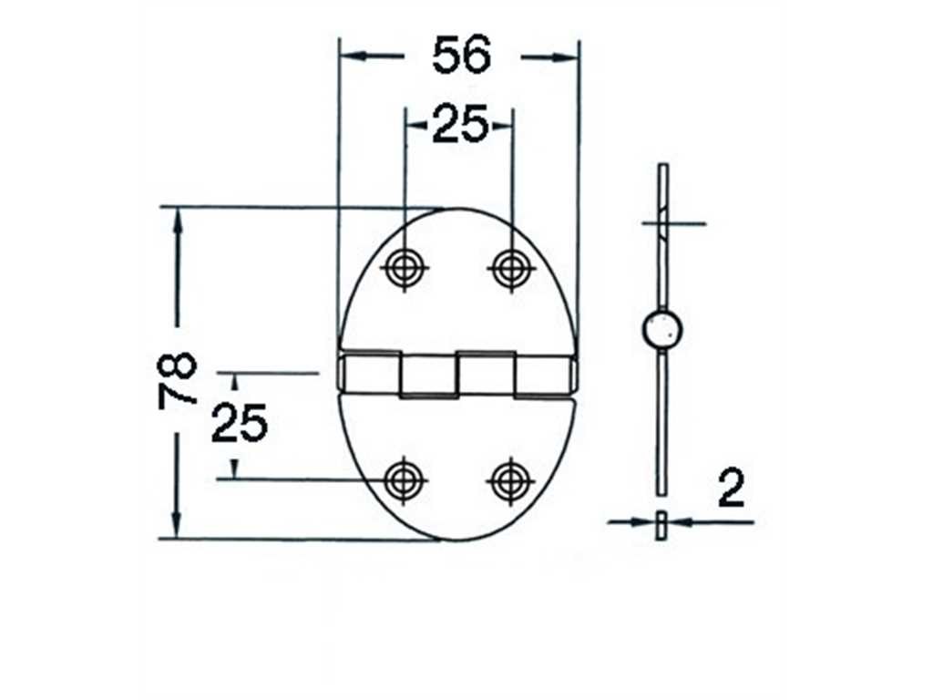 Cerniera 78 x 56 x 2 mm Nodo sporgente
