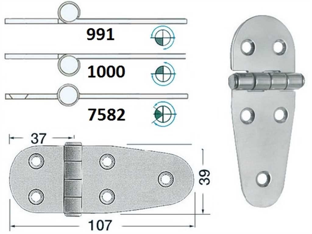 Cerniera 107 x 39 x 2 mm. Nodo Rovesciato