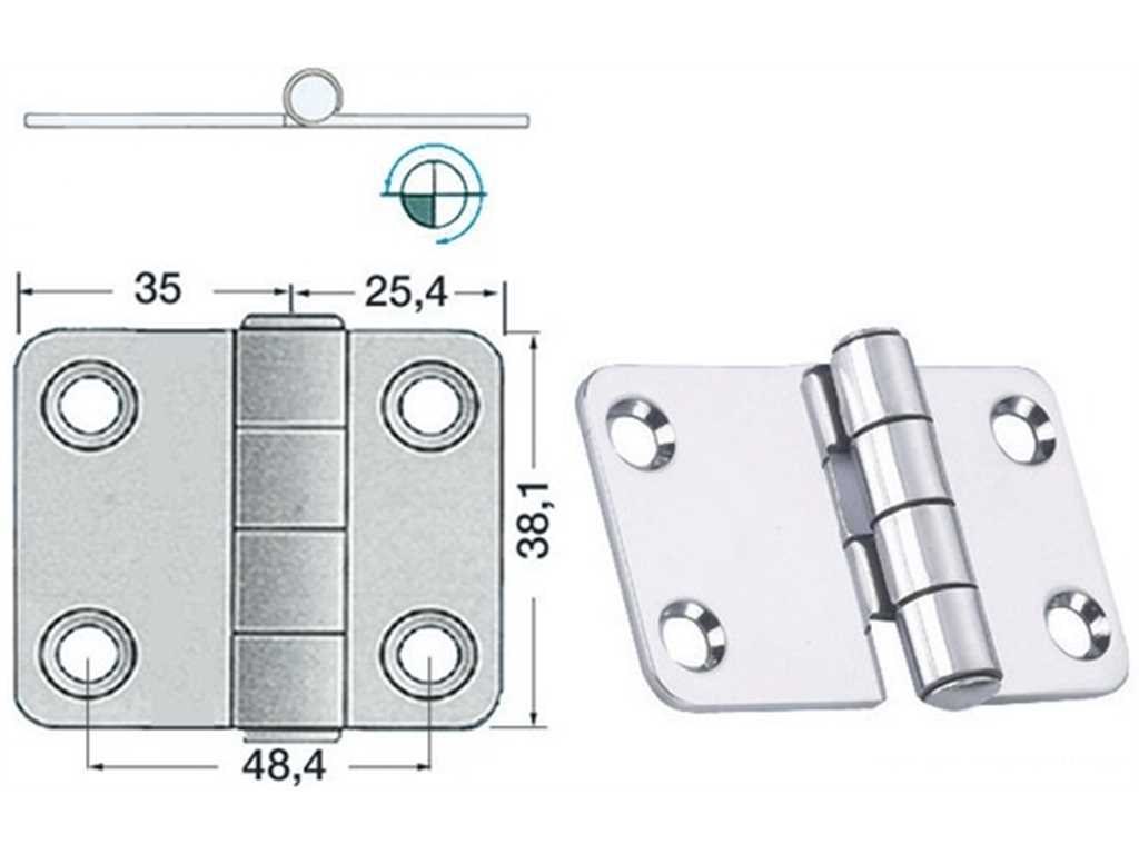 Cerniera 38 x 39 x 2 mm. Nodo sporgente