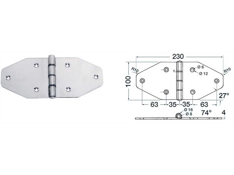 Cerniera 230 x 100 x 4 mm.