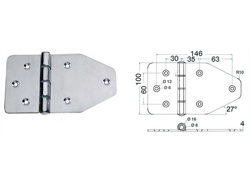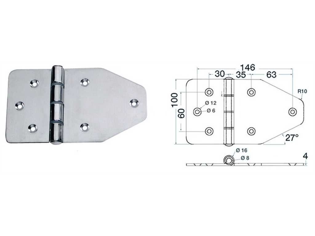 Cerniere in acciaio inox lucidate a specchio . Spessore 4 mm. .