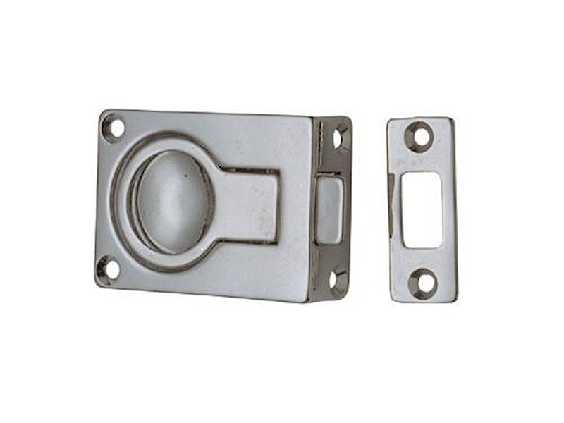 Chiusura ad incasso in ottone cromato. Si abbassa a molla, utile per stipetti ed usi vari.