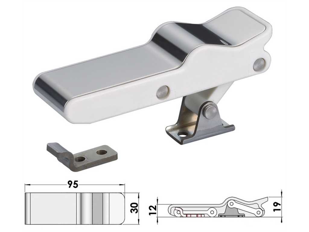 Chiusura a leva eccentrica. Dimensioni 95 x 30 mm.
