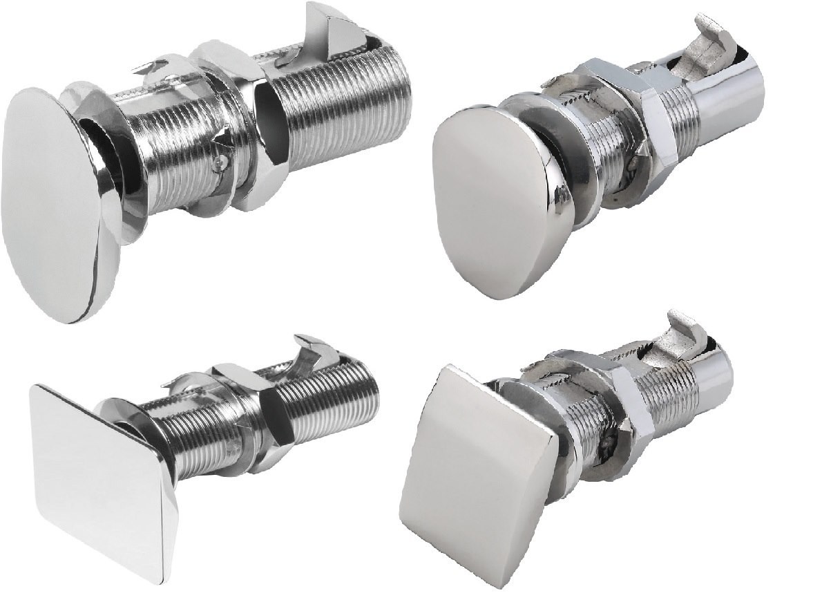 Chiusura universale che resta quasi a filo del pannello. E' adatta per cassetti e ante anche pesanti in quanto offre un ottimo appiglio. Fabbricato in acciaio inox lucido + ottone cromato.